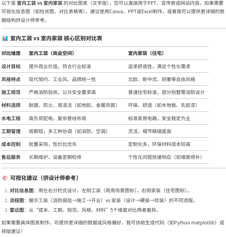 | 對比項 | 室內工裝 | 室內家裝 |